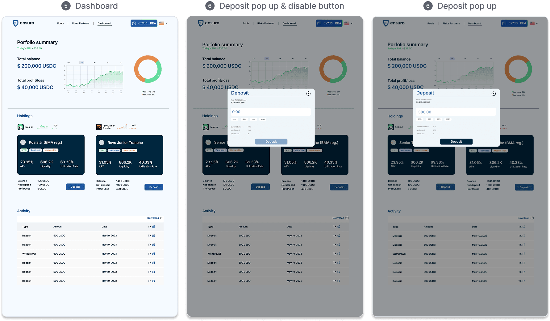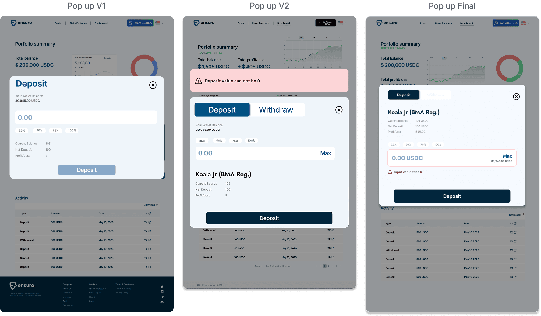 Dashboard & Deposit Design Iterations